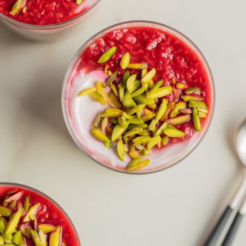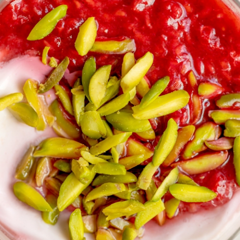 These Raspberry, Rose, and Pistachio Overnight Oat Breakfast Puddings combine the tartness of raspberries with the subtle floral notes of rosewater, all layered with creamy Greek yoghurt and wholesome oats. They're then topped with a sprinkle of slivered pistachios for a delicious crunch.