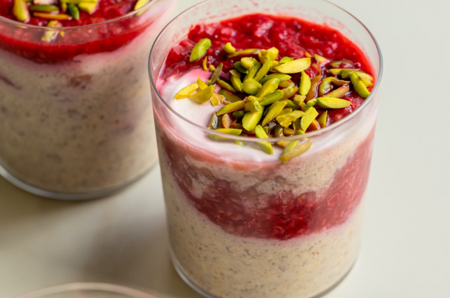 Raspberry, Rose & Pistachio Overnight Oat Breakfast Puddings