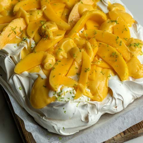 Fresh Mango & Mango Curd Sheet-Style Pavlova