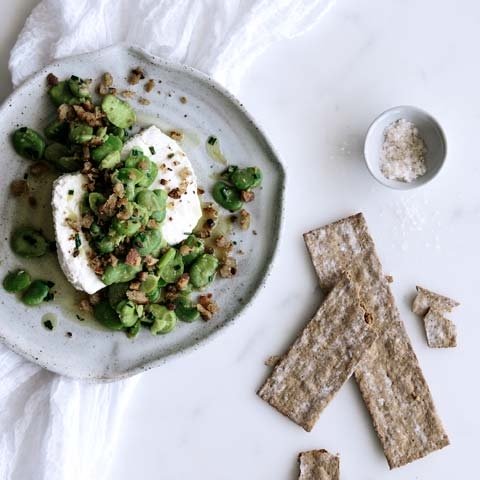 Fresh Ricotta with Broad Beans & Rye Sourdough Breadcrumbs